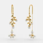 Tarv Diamond Drop Earrings in 14KT rose gold embrace a floral motif with a high polish finish, accentuating diamonds for subtle shimmer. The design flows gracefully along the ear, offering an elevated expression of modern elegance. Each curve merges seamlessly into the next, creating a sense of gentle movement. Comfortable to wear, the earrings enhance presence with quiet sophistication, making Tarv Diamond Drop Earrings a perfect companion for daily adornment.